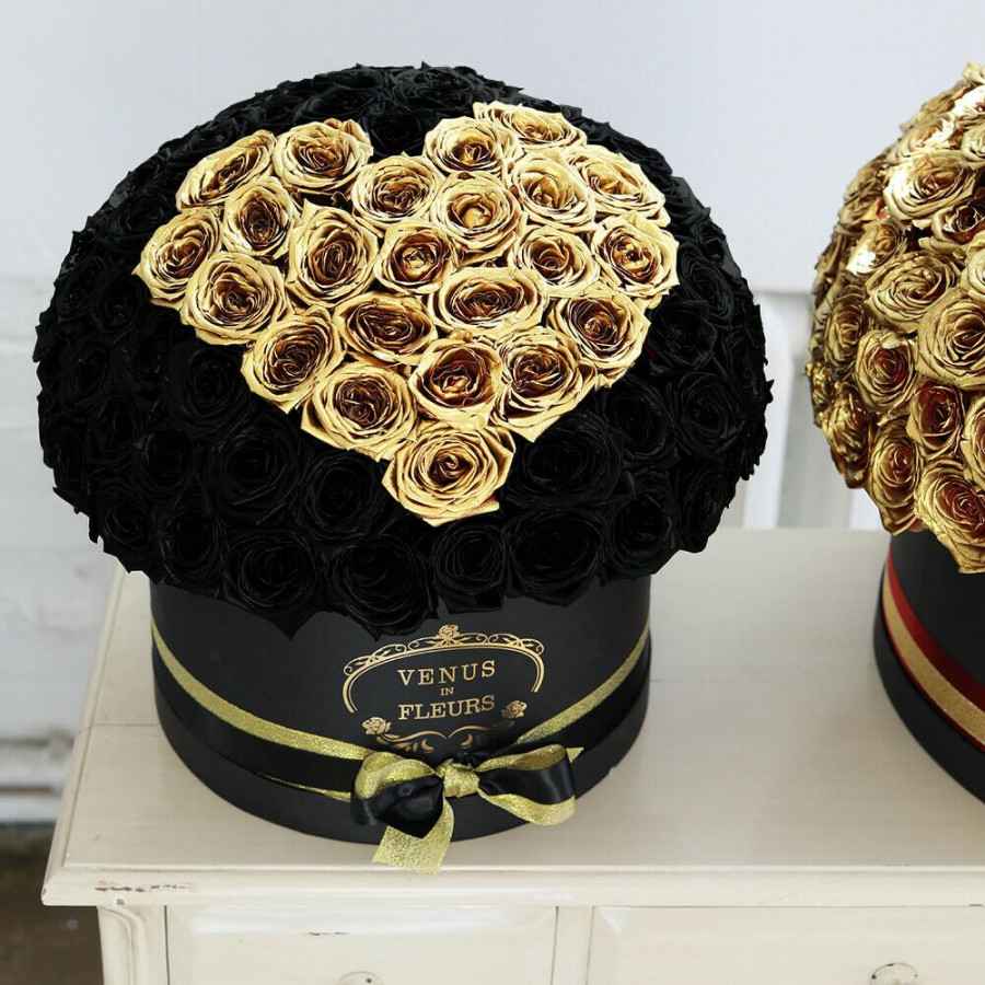Букет из 201 черной и золотой розы в коробке в Переславле-Залесском