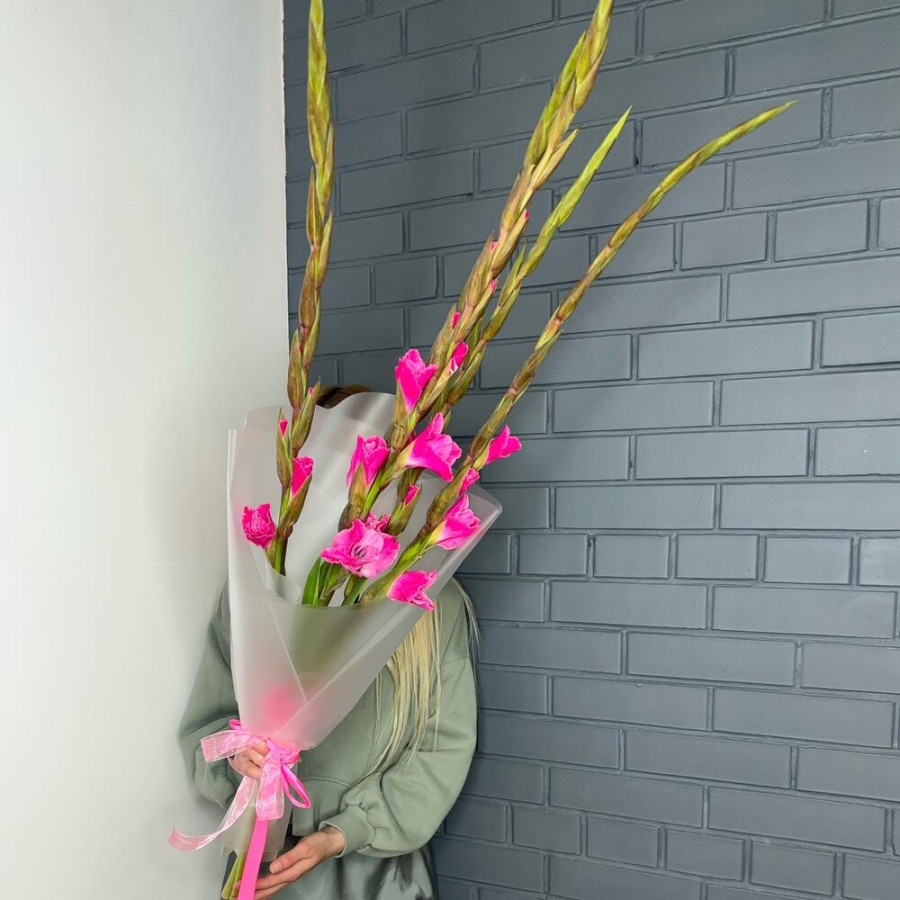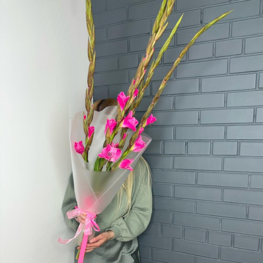 Букет из 9 розовых гладиолусов
