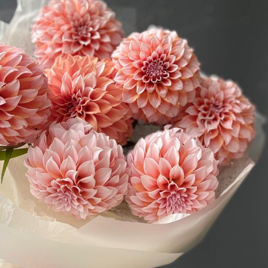 Букет из 7 персиковых георгин фото 3