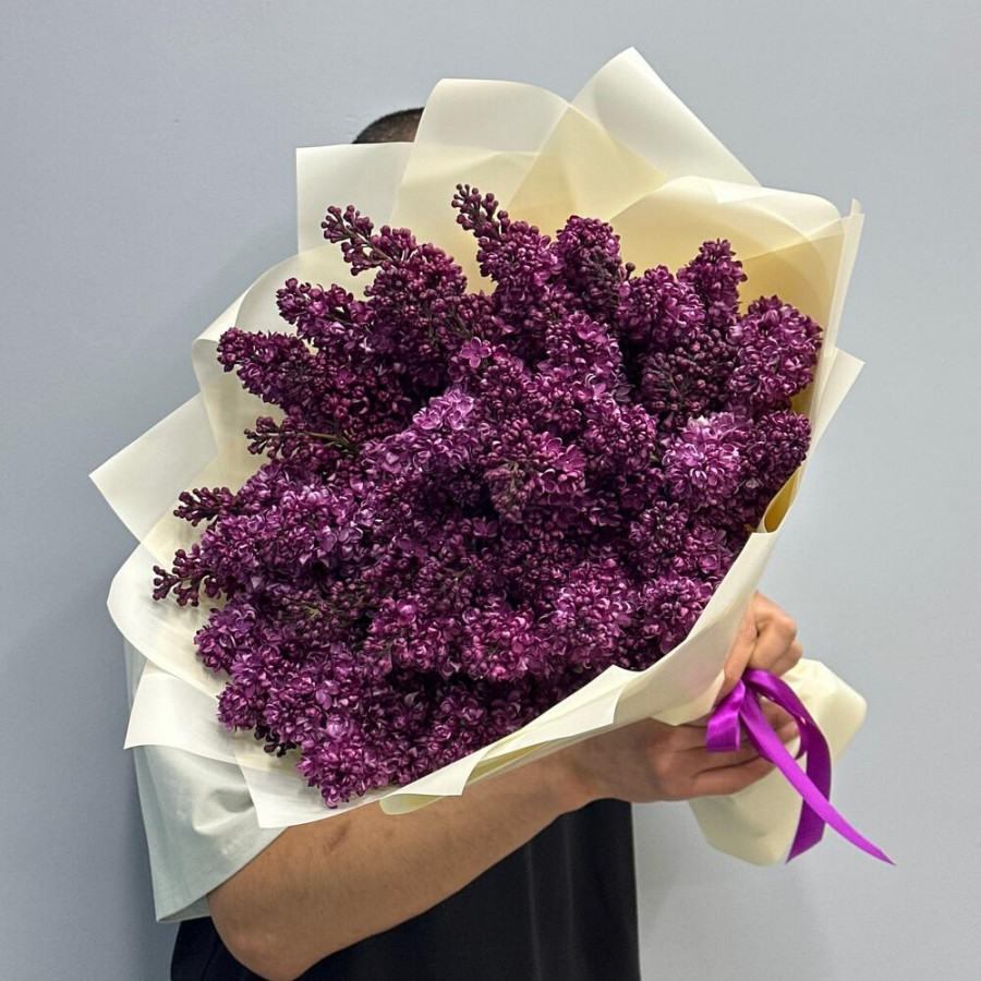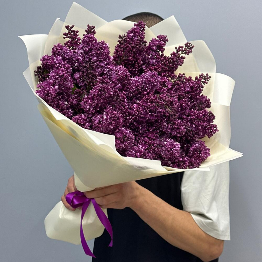 На фото большой букет сирени. В составе: сирень 11 шт, дизайнерская упаковка 3 шт, атласная лента 1 шт, . Все цветы свежие и ароматные, букет красиво оформлен и отлично подходит для подарка. Доступна доставка цветов или самовывоз.