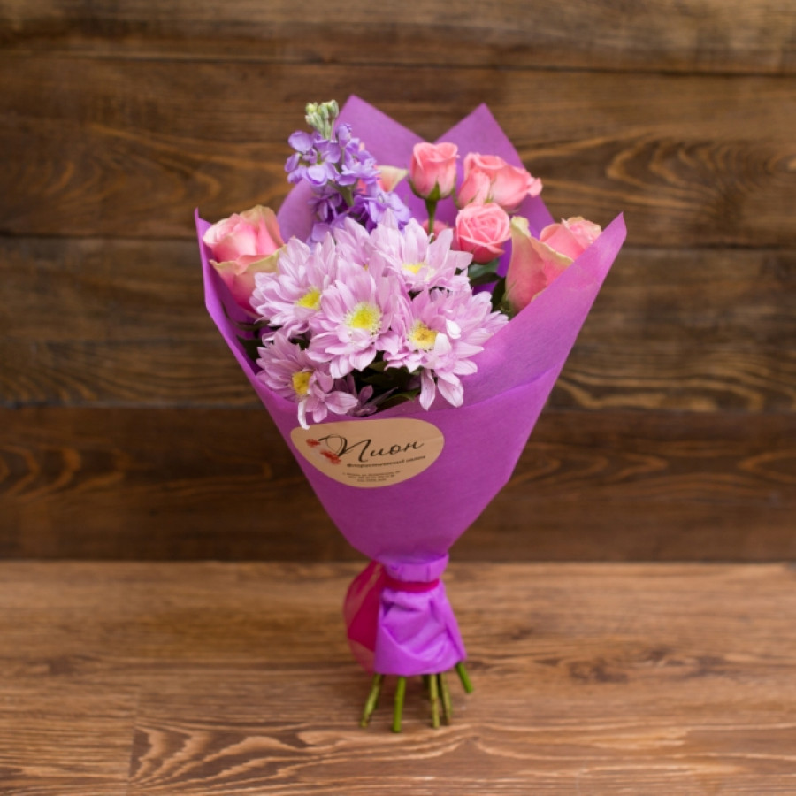 Романтика – это очень просто… Достаточно подарить представительнице прекрасного пола изысканный букет, состоящий из прекрасных роз, чудесных хризантем и писташа, и леди будет улыбаться ярче самой яркой звезды на небе…