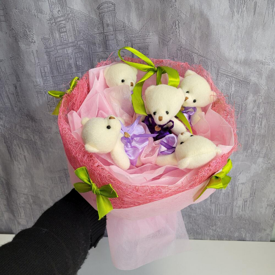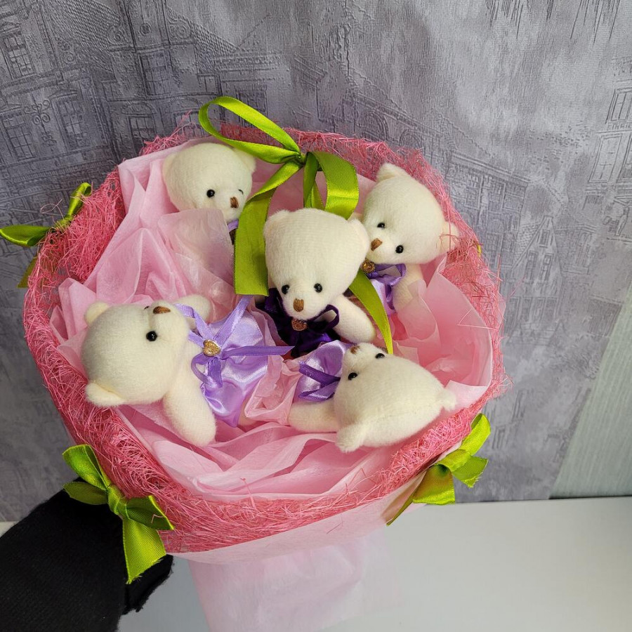 Букет из игрушек мишки 5 шт фото 4