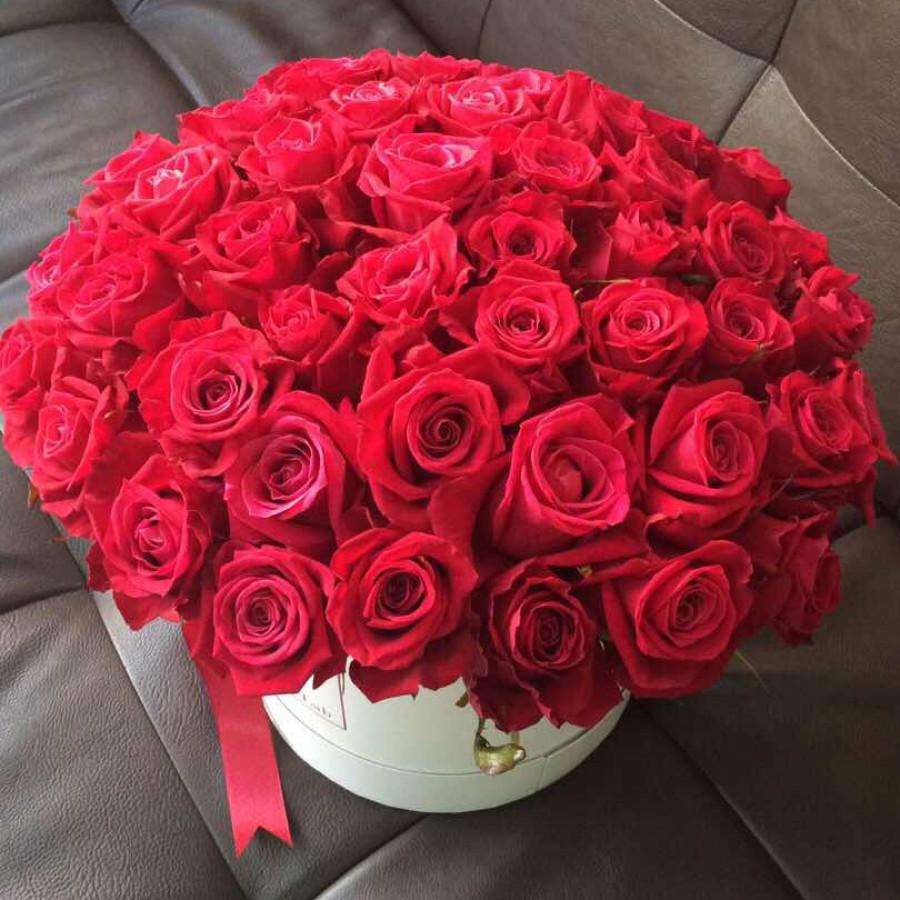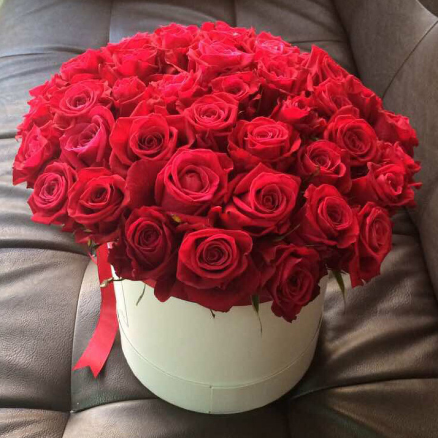 55 роз в шляпной коробке - это широкий жест, который будет оценен по достоинству. Крупные благоухающие бутоны красных роз один к одному собраны в белой шляпной коробке, чтобы впечатлить получательницу и передать ей обжигающую страсть Ваших чувств.
