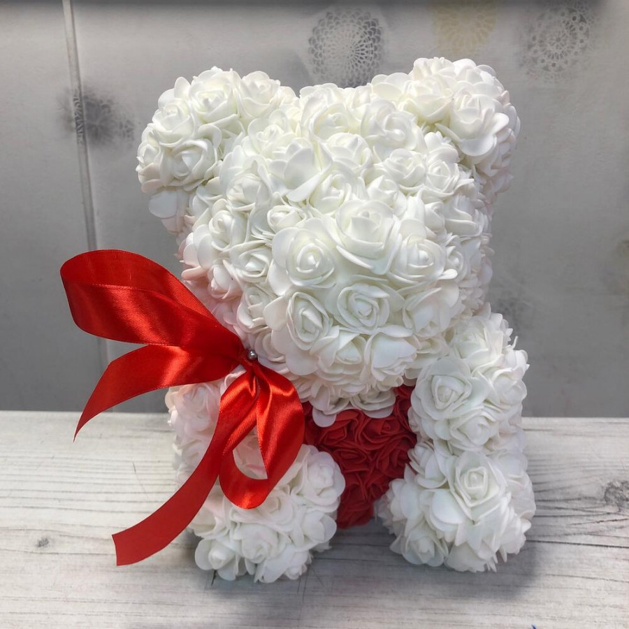 Мишка из роз белый